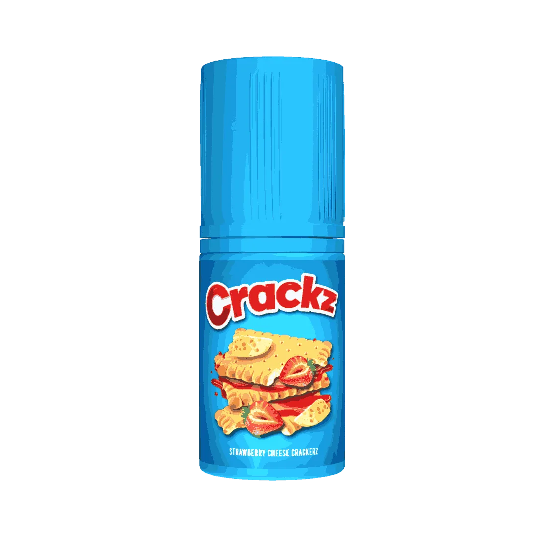 Crackz Strawberry Cheese Crackerz Saltnic. Liquid saltnic creamy dessert dengan kombinasi strawberry manis, keju gurih, dan biskuit renyah yang bikin nagih. Rasa seimbang antara creamy & fruity, cocok untuk pengguna pod yang suka sensasi dessert elegan dan halus di tenggorokan.